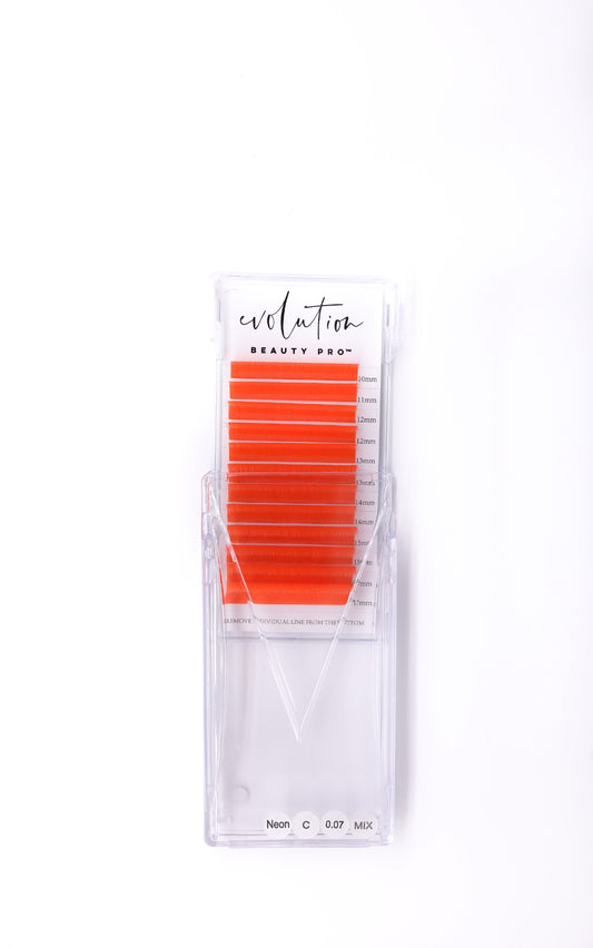 Neon Orange Colored Lash Extensions - Mixed Tray - Easy Fan 10-17mm