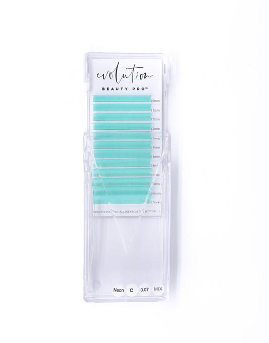 Aqua Colored Neon Lash Extensions - Easy Fanning - Mixed Tray - 10-17mm